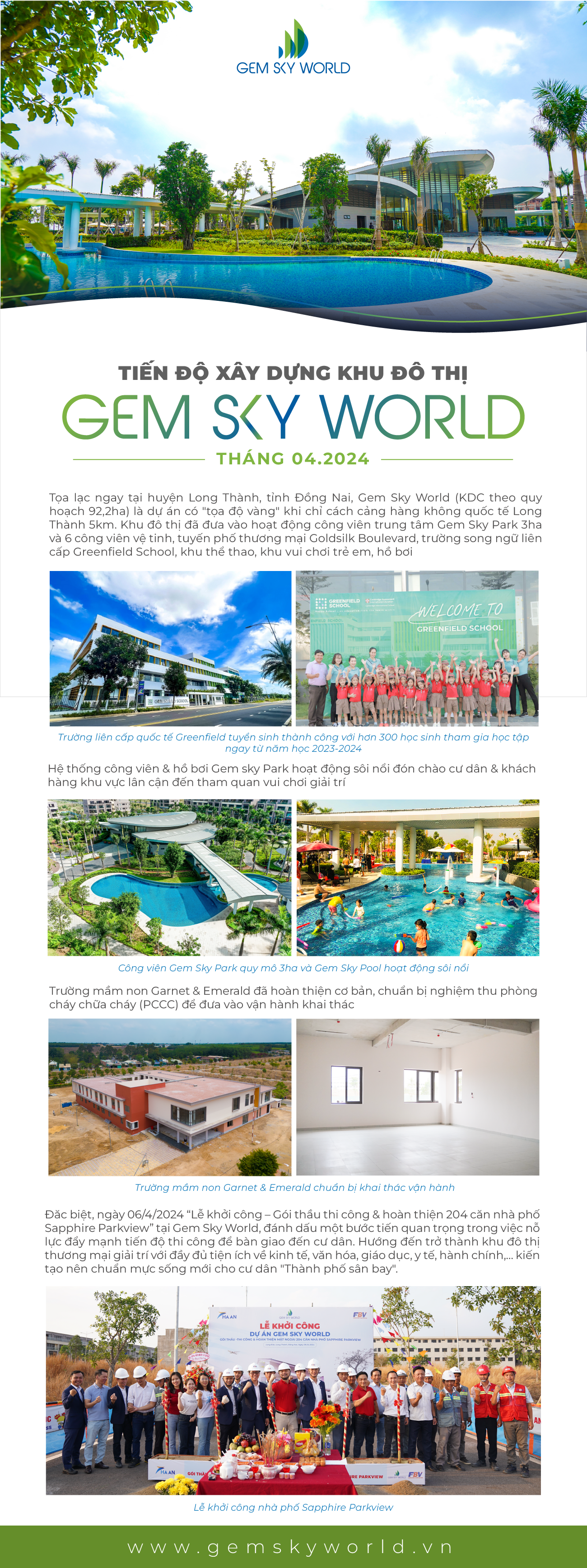 TIẾN ĐỘ THI CÔNG GEM SKY WORLD THÁNG 04.2024